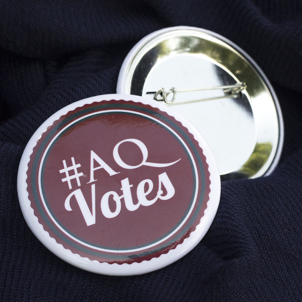 In 2012, the Student Senate board elections coincided roughly with the US General Election. In the interests of encouraging civic engagement on the national scale, as well as interest in student government, the Student Senate and Campus Life offices asked me to create a button that felt like an "I Voted" sticker.
