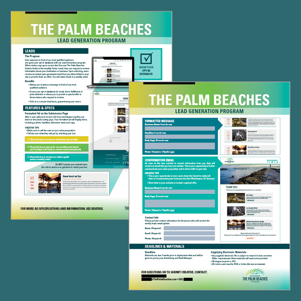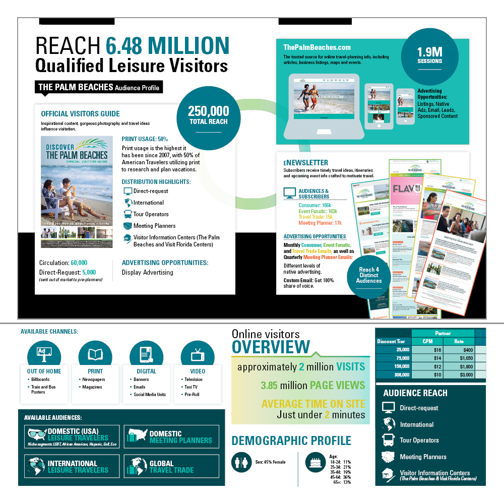 Discover The Palm Beaches, the official tourism marketing corporation for Palm Beach County recently rebranded their website and wanted new materials to market advertising opportunities to local businesses.