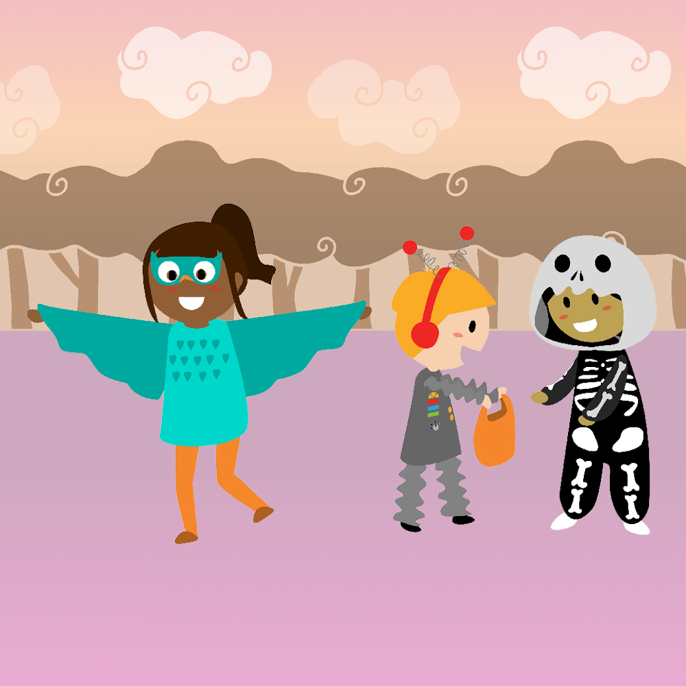My instructions were as simple as “Halloween” “Thanksgiving” and “winter time” so I developed those themes as interestingly as I could while maintaining the simplicity of the style. I take particular pride in all the different halloween costumes, especially the owl (which is their mascot) and the tube of toothpaste.