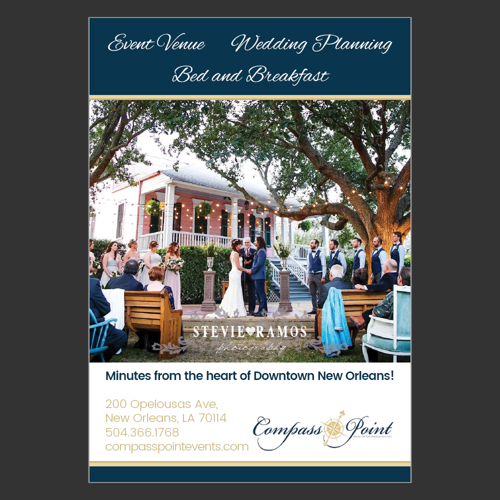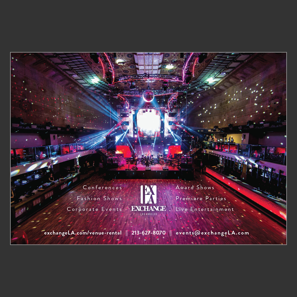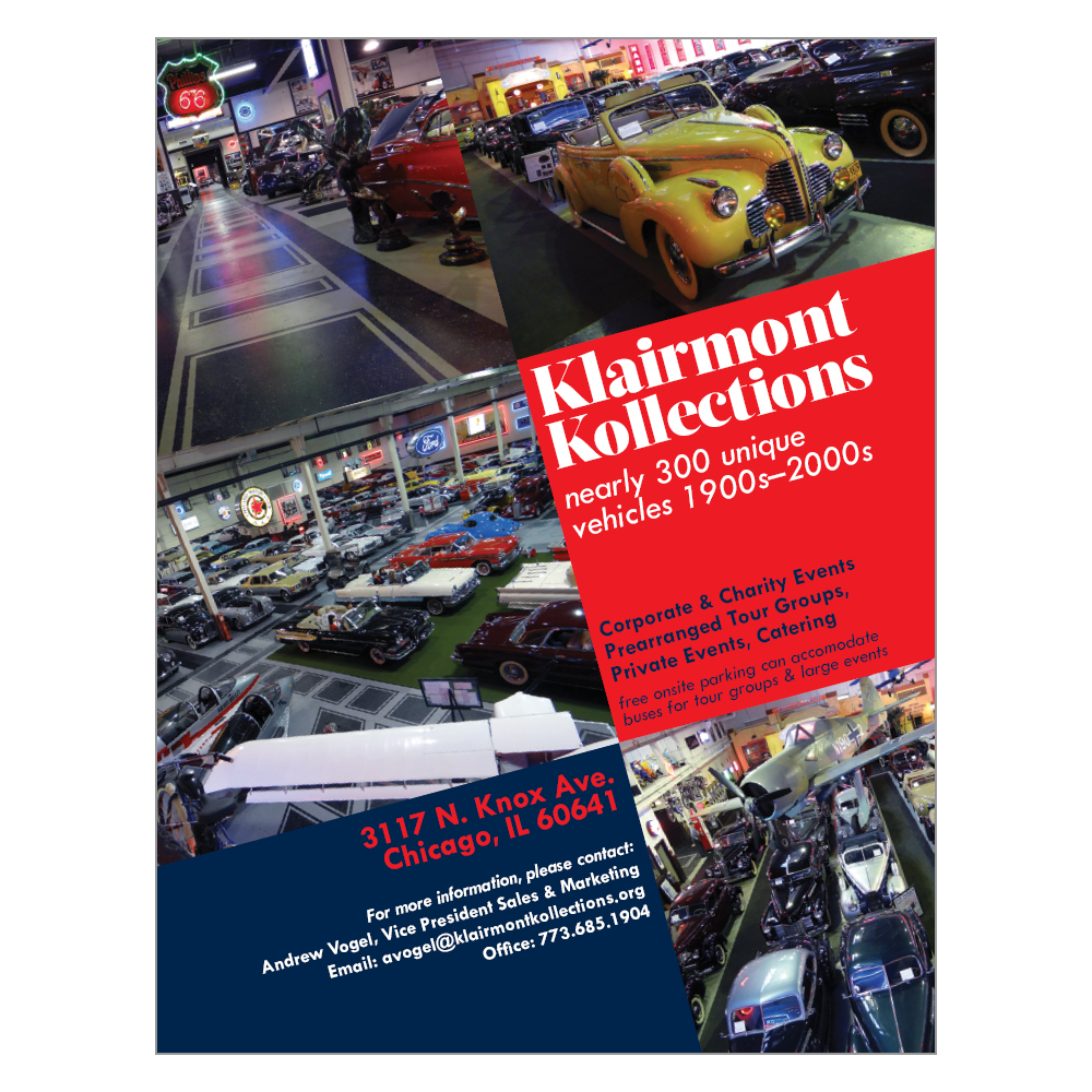 The first three ads I had no direction other than a few images and sometimes a logo and official colors. These three are the results of trying out new things based on the feel of the individual businesses. Exchange LA included in their materials an airy, primarily photo-based ad from a hotel as an example for the feel they wanted, and I did my best to replicate it. Klairmont Kollections provided a wealth of images, not all of which could be included, so I showed them several different layout options before they settled on this.