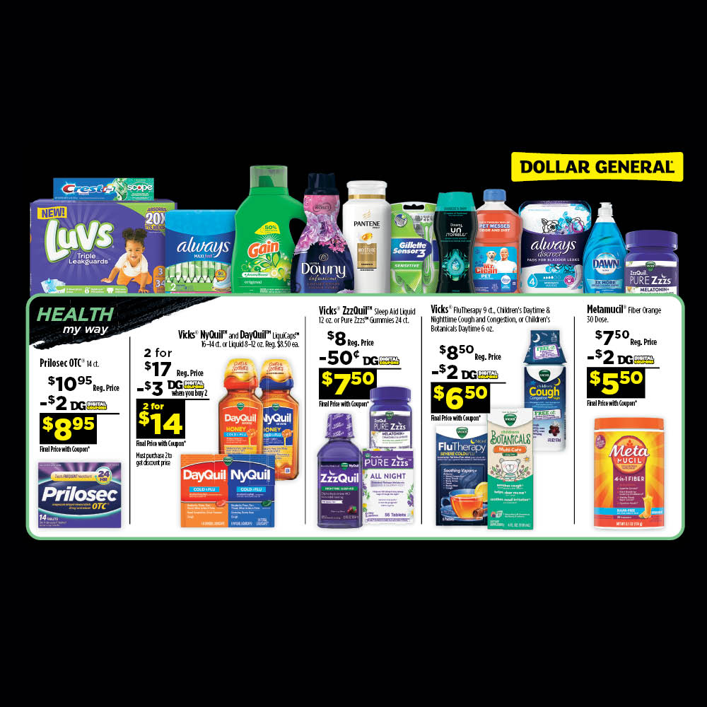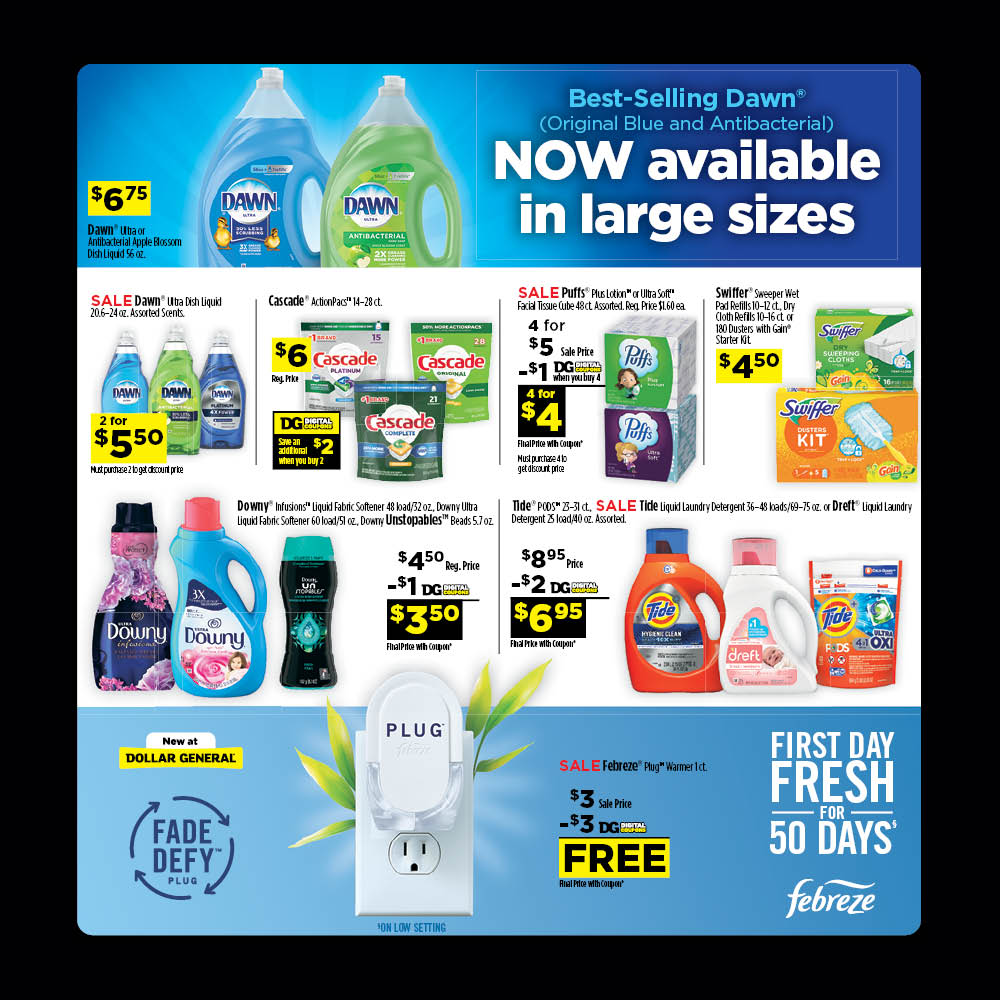 Every few months, Procter & Gamble would run a center spread in the Dollar General circular ad, in order to advertise deals and coupons.